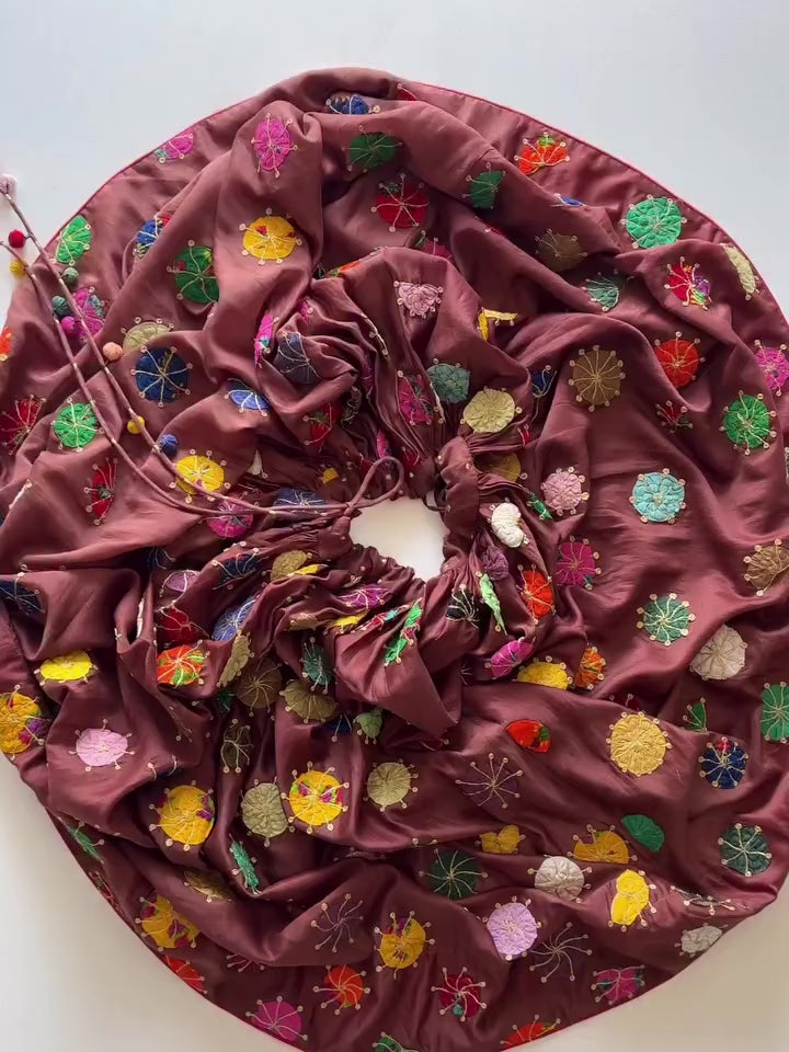 - Whimsical floral appliqués, arranged like a colorful tapestry, bring vibrancy and charm, making this piece truly unforgettable.