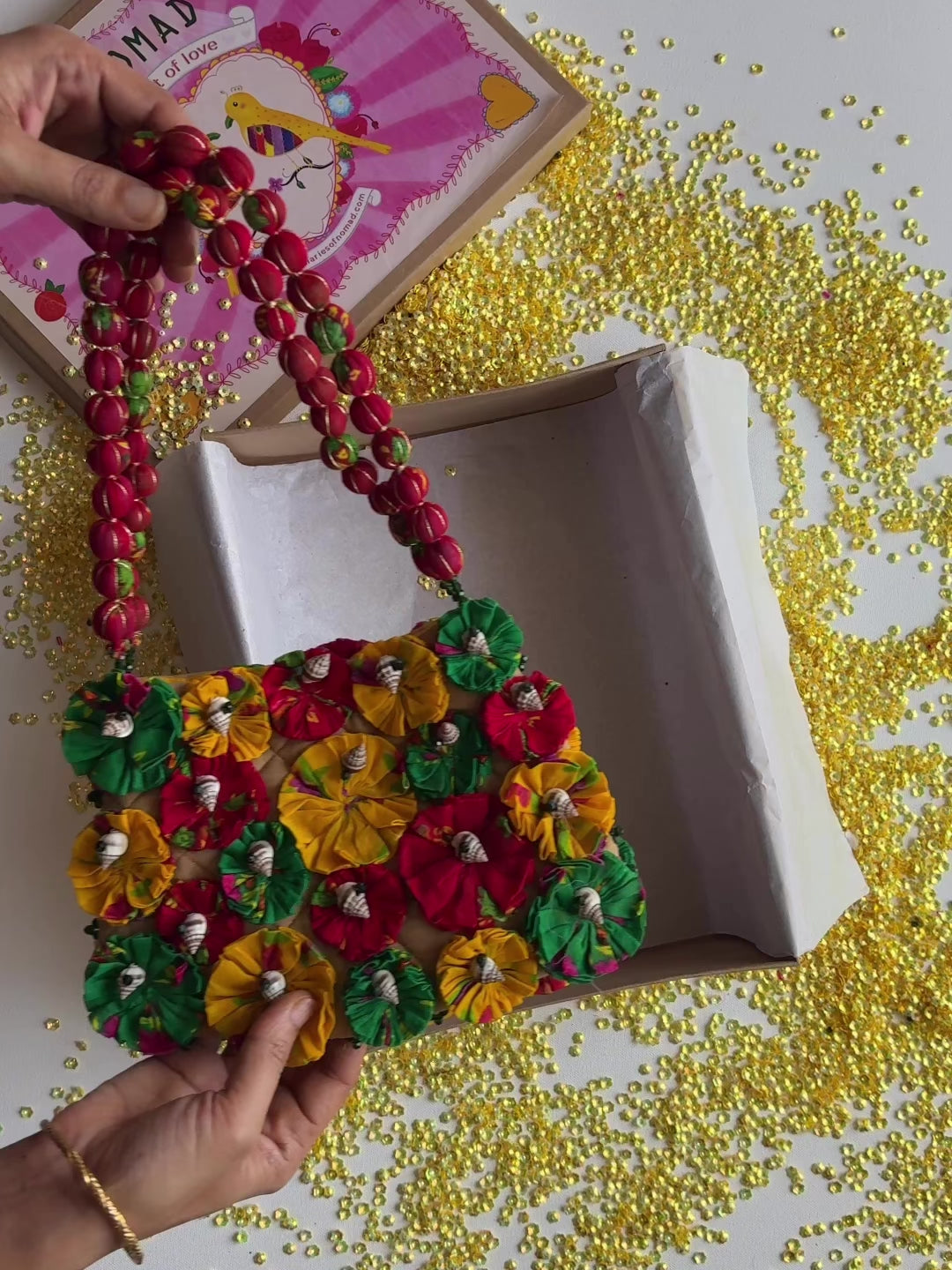 Celebrate whimsy and festive cheer with the Chammak Shell Bag—where playful blooms, sparkling beads, and vibrant details come together in perfect harmony.