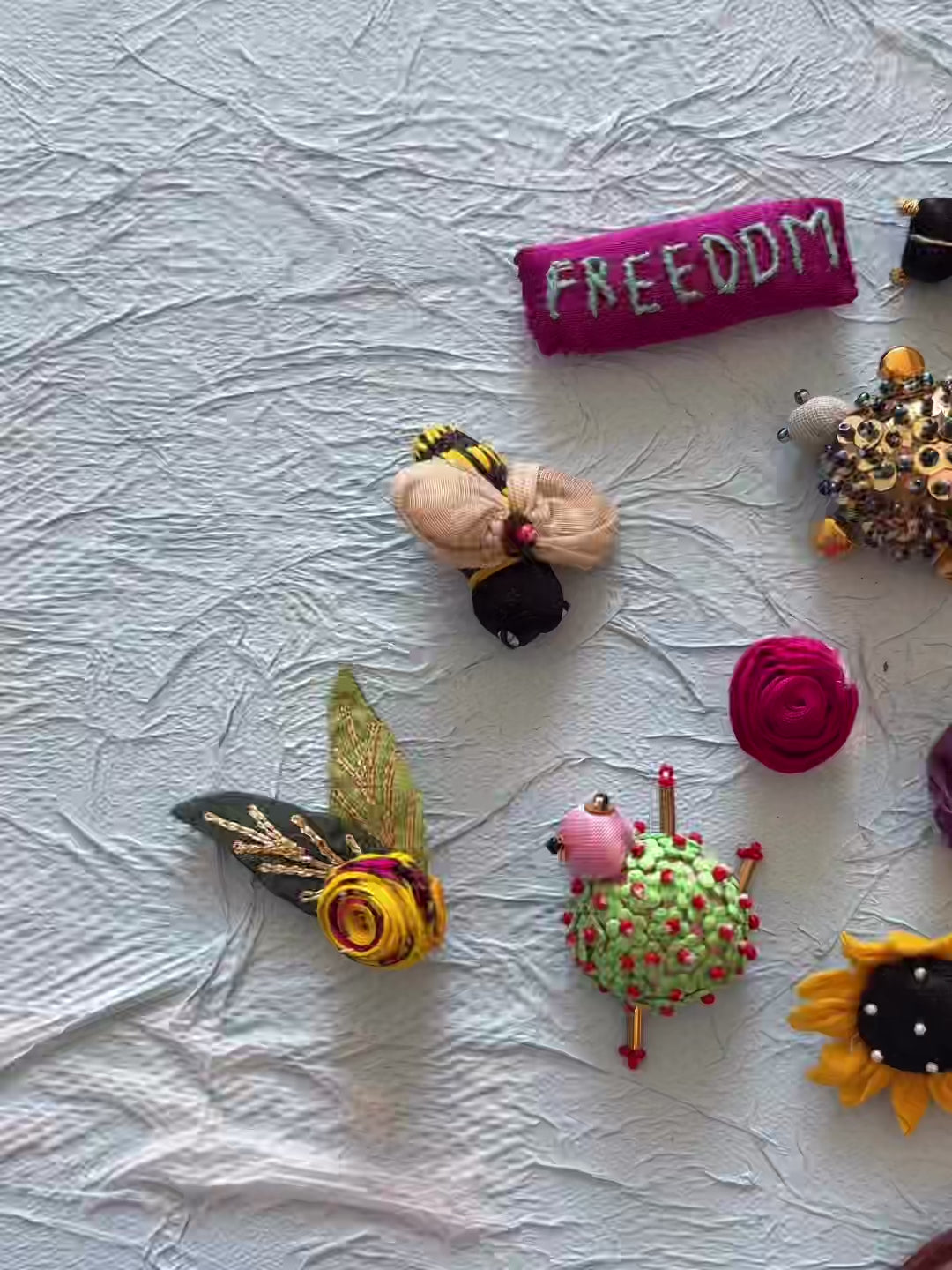 This pack includes: 1 "FREEDDM” Patch Charm, 1 Purple Floral Charm, 1 Sunflower Charm, 1 Beaded Beetle Charm, 2 Rose with Embroidered Leaves, 1 Dragonfly Charm, 1 Bee Charm, 1 Caterpillar Charm, 1 Mini Floral Charm