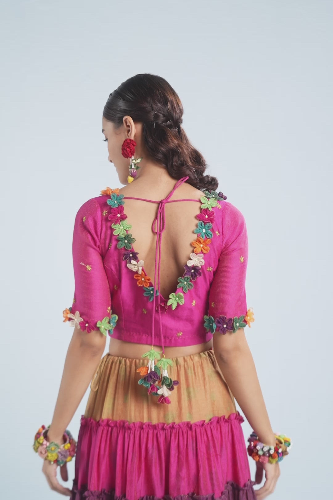 A blouse full of romance and flowers is on the cards this season! One of a kind with minute details and floral opulence, it's that classic piece of attire which you would want to cherish for years and seasons!