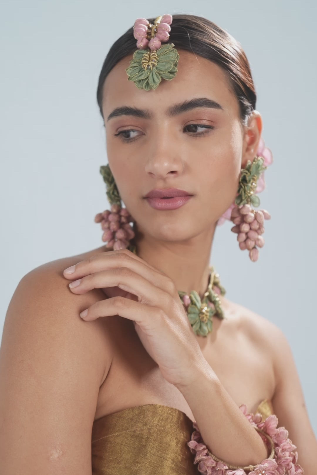 Lily Floral Jewellery Set features our artistic expression with a mix of flora, beads and hangings. Vivaciously bohemian and laboriously hand crafted.