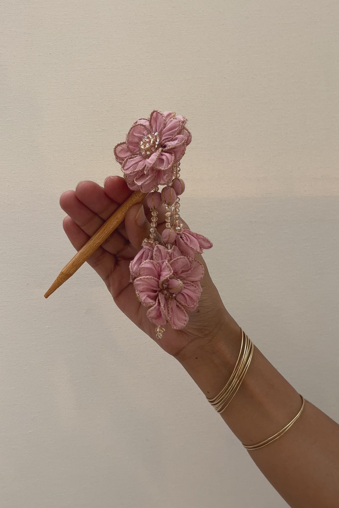 Lily Juda stick features our artistic expression with a mix of flora, beads and hangings. Vivaciously bohemian and laboriously hand crafted.