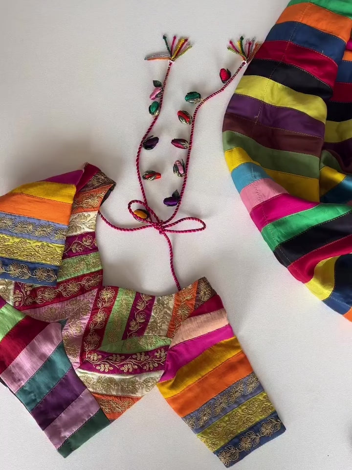 - With its lively mix of stripes, rich brocades, and intricate embroidery, the Lota Multicolor Blouse is designed to make your celebrations even more special.