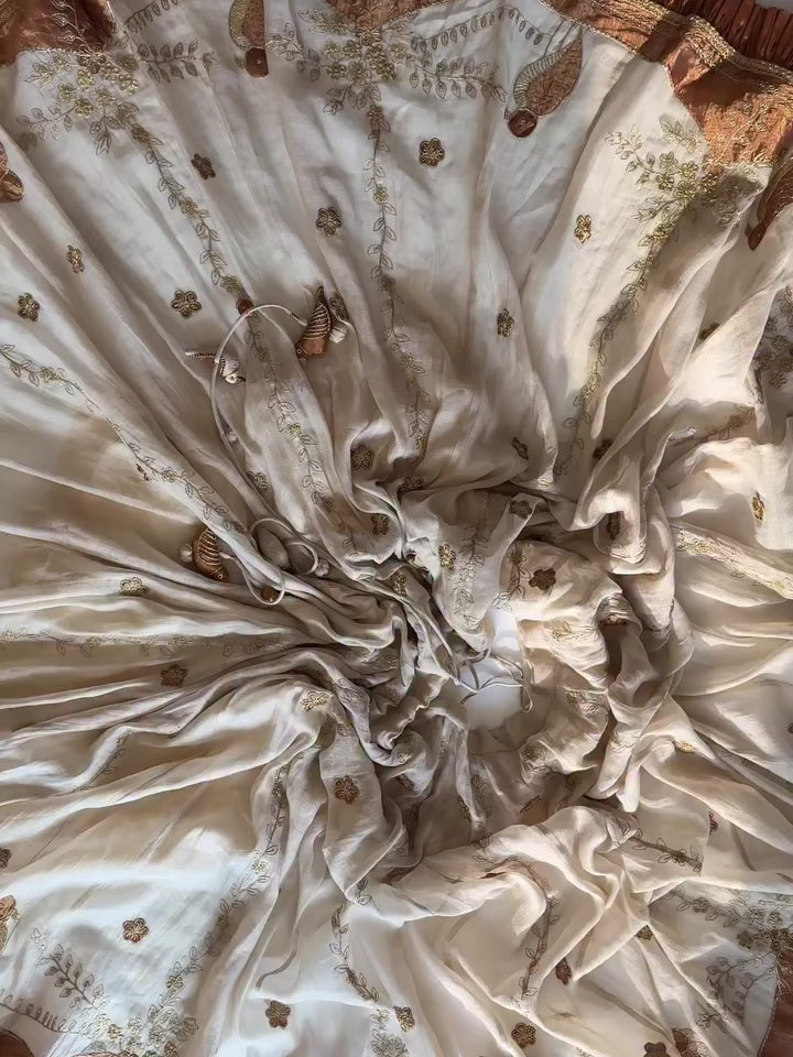 - Gold zari embroidered all over