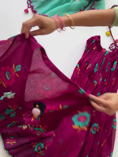 The Matkila Ghagra Choli Set is a vibrant ode to festive nights, alive with bold florals and a sweeping 7-meter flare. Paired with a matching choli and dupatta, it embodies the rhythm, color, and joy of Garba celebrations.