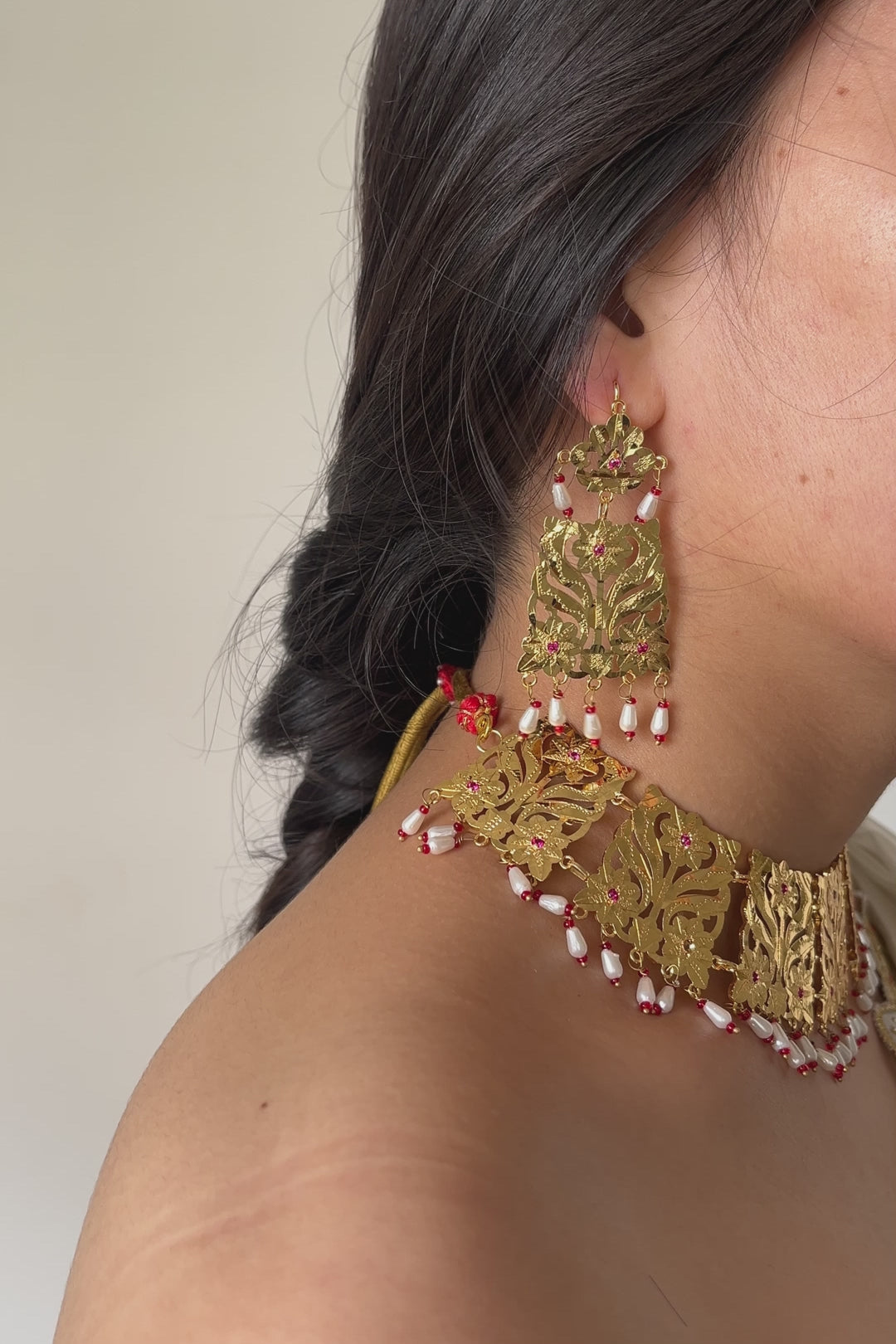 - Necklace with adjustable silk dori & Earrings with hanging loop back