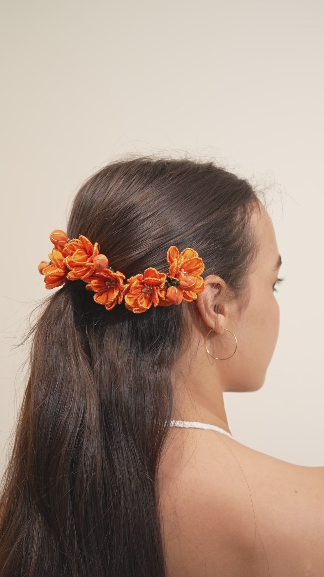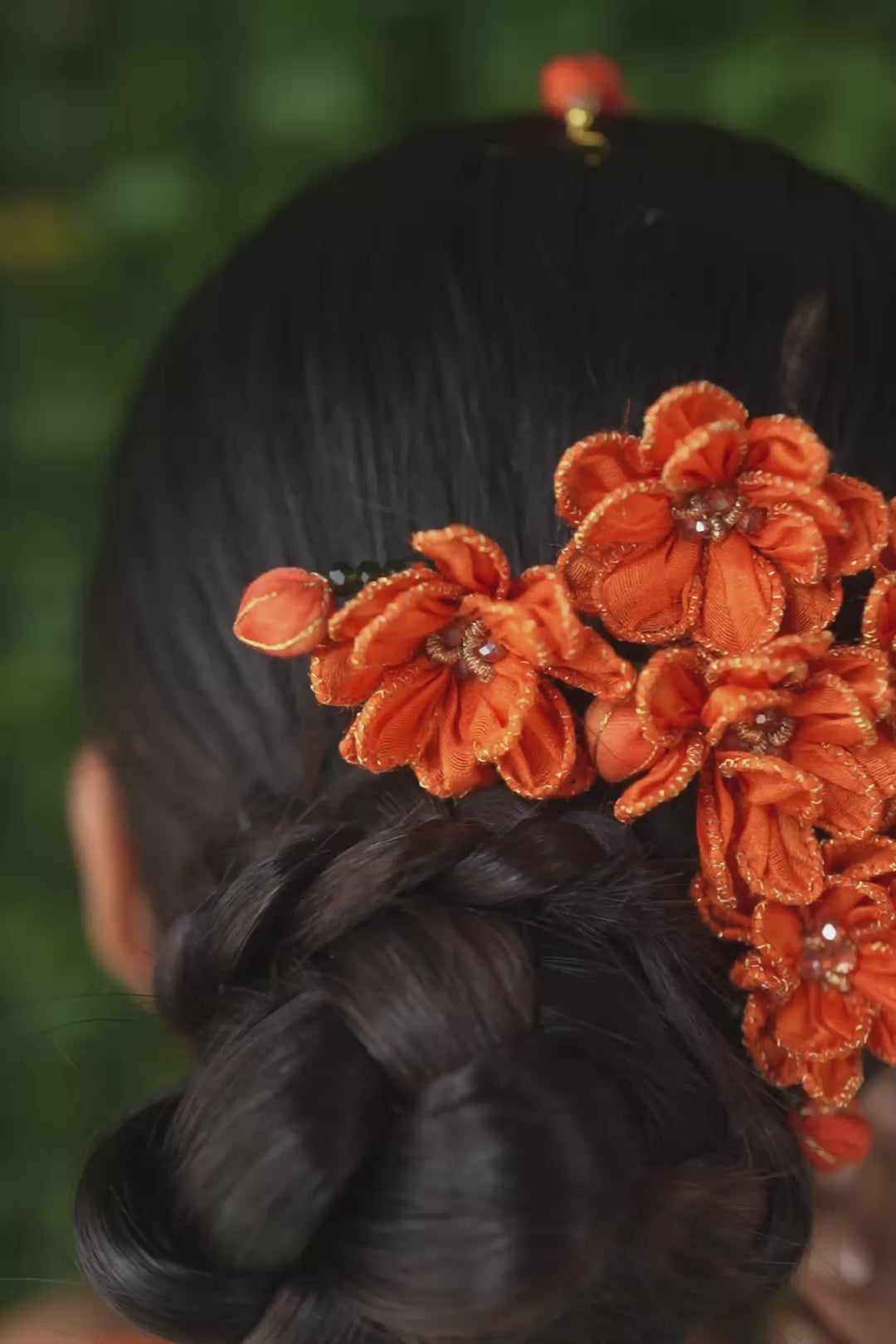 Hand-rolled by deft hands, the orange flower with leaves are reimagined as a Juda pin. A quick fix for the hair, these pins are a go-to accessory you can wear on days you dress up or for a casual look.