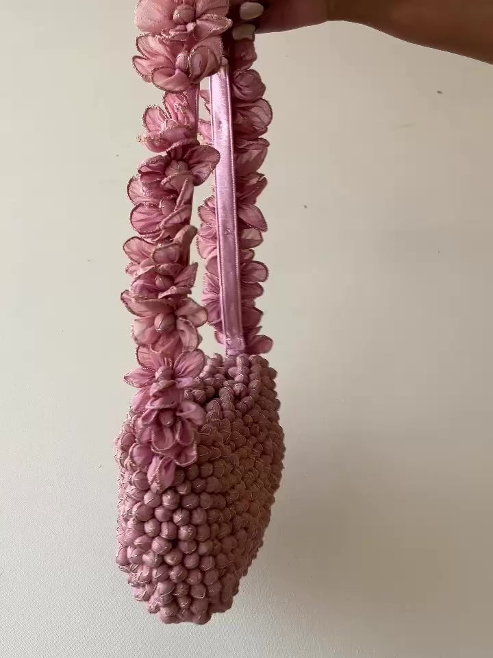 Our Sherry half-moon bag comes with all over beads that are laboriously handmade by artisans and then sewn on silken base, magnetic button & a strap full of flowers. This classic bag can be filled with a whole lot of luck & love.
