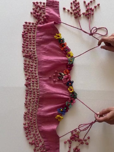 - Chic fabric buttons and a tie-up dori, accented with playful beaded latkans, create a whimsical touch perfect for festive celebrations.