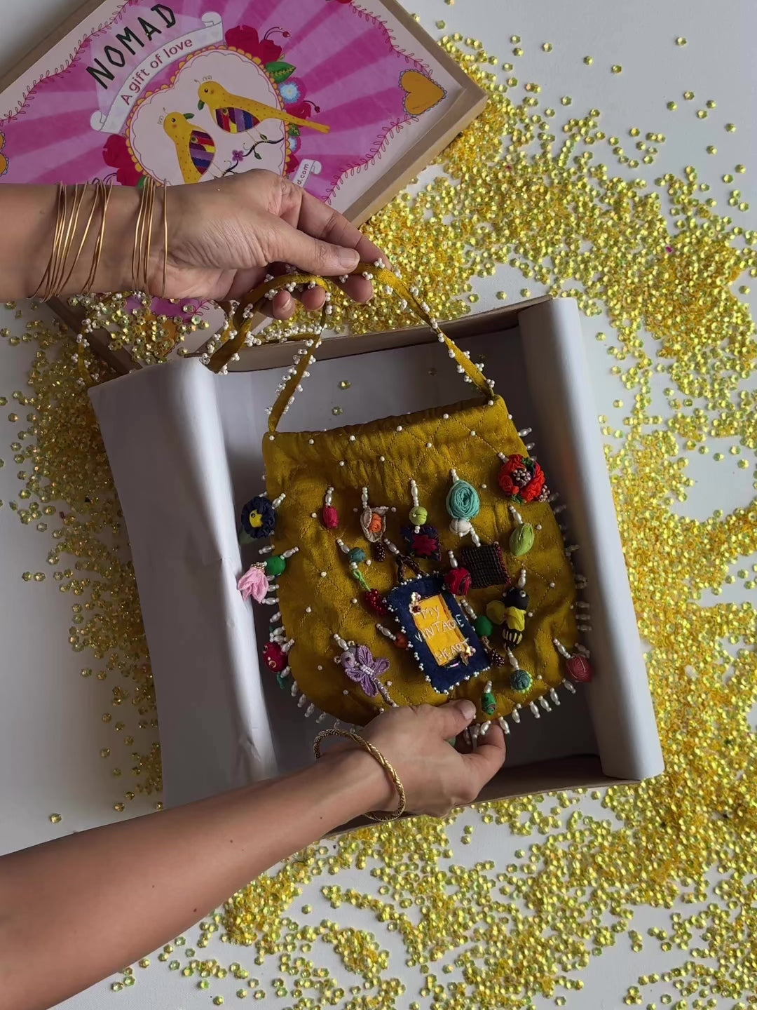 A whimsical twist on tradition, the Soan Papdi Bag brings festive cheer to every outfit. Add playful charm and festive energy.