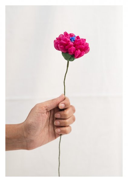 This dainty flower is a reminder of love. Hand-rolled with precision and mounted on a soft metal stick.